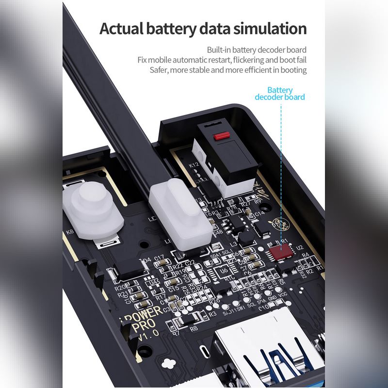 8. Real battery data simulation, built-in battery decoder board, fix mobile iPhone automatic restart, flickering